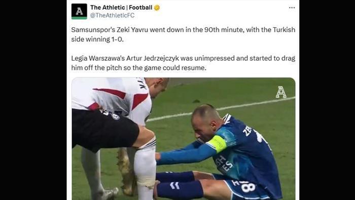 The Athletic de bu olayı es geçmedi ve yaşananları, “Samsunspor’dan Zeki Yavru, 90. dakikada yere düştü ve Türk takımı 1-0 öndeydi. Legia’dan Artur Jedrzejczyk bundan etkilenmedi ve maça devam edilebilmesi için onu sahadan sürüklemeye başladı.” ifadeleri ile sosyal medyasına taşıdı.