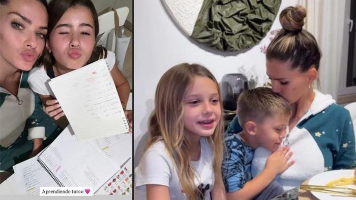 Gittikçe Türkiye’ye alışan güzel isim sosyal medyada da gündem olurken hemen ardından çocuklarıyla Türkçe öğrendiği anları paylaştı.